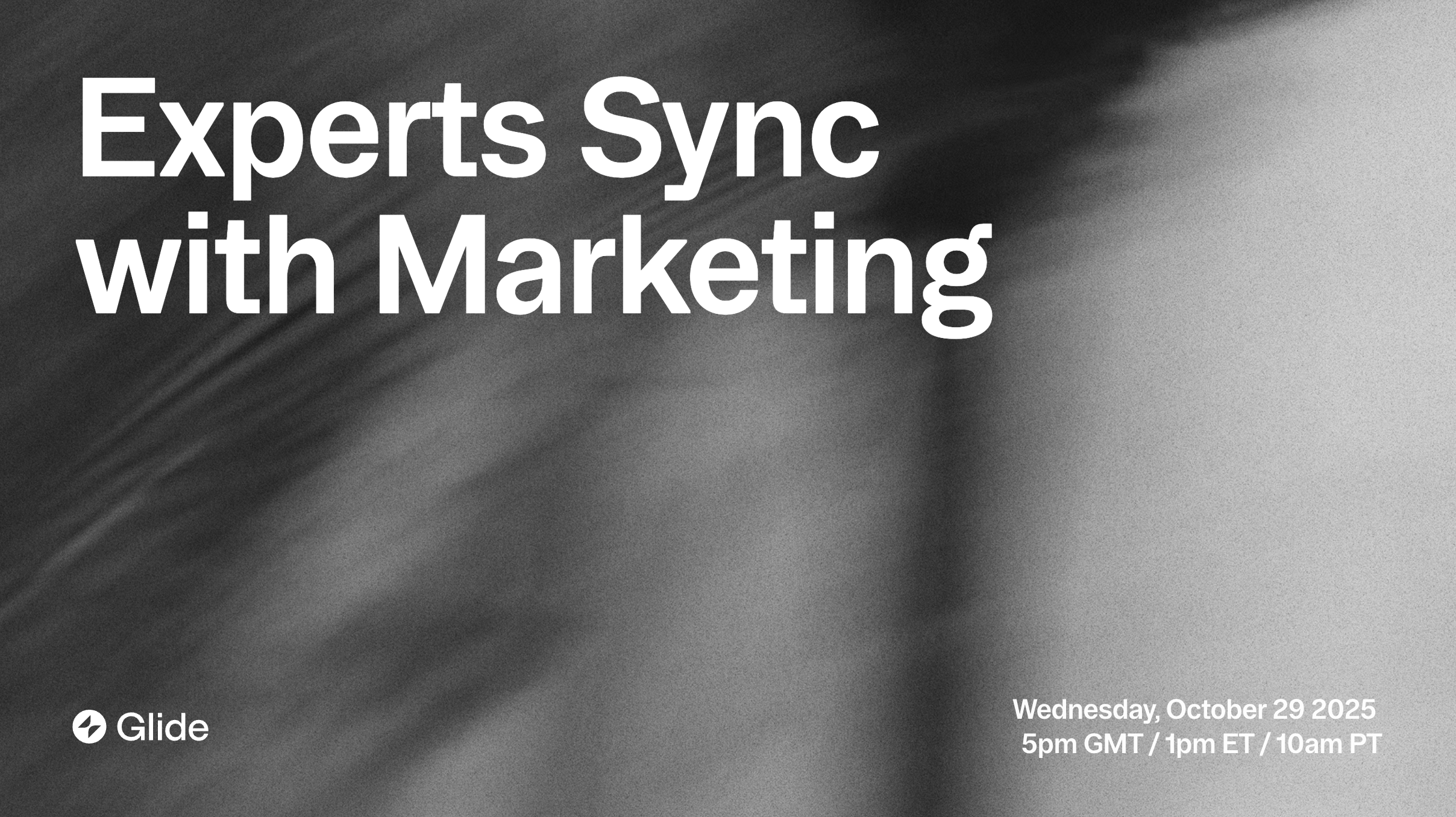 Join us on Wednesday, October 29th for a casual, Q&A-styled Experts Sync with Glide's Marketing team.